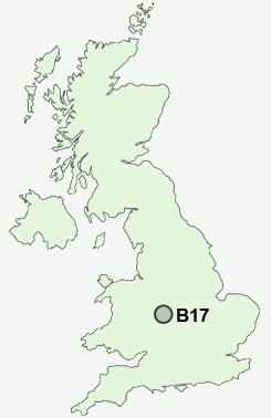Postcodes in the B17 sector. Covering areas such as Harborne, Bearwood and Birmingham in West Midlands.