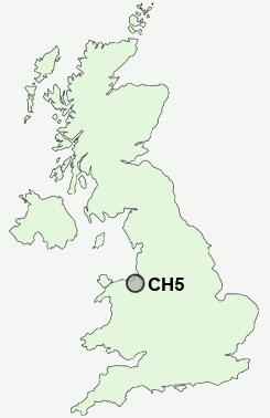 Postcodes in the CH5 sector. Covering areas such as Big Mancot, Mancot Royal, Connah's Quay, Ewloe Green, Shotton, Wepre, The Moor, Pentre, Aston, Queensferry, Hawarden, Garden City, Golftyn, Higher Shotton and Flintshire.