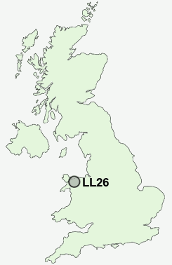 Postcodes in the LL26 sector. Covering areas such as Llanddoged, Nebo, Tan-lan, Capel Garmon, Melin-y-coed, Brynmorfudd, Nant-y-Rhiw, Llanrwst and Conwy.