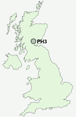 Postcodes in the PH3 sector. Covering areas such as Polnish, Ardery, Arean, Stronaba, Alltour, Trinity Gask, Ormsaigmore, Kinloch Hourn, Bunree, Blain, Druimindarroch, Auchterarder, Achnaha, Inchree, Shielfoot, Highland and Perth and Kinross in Perth And Kinross.